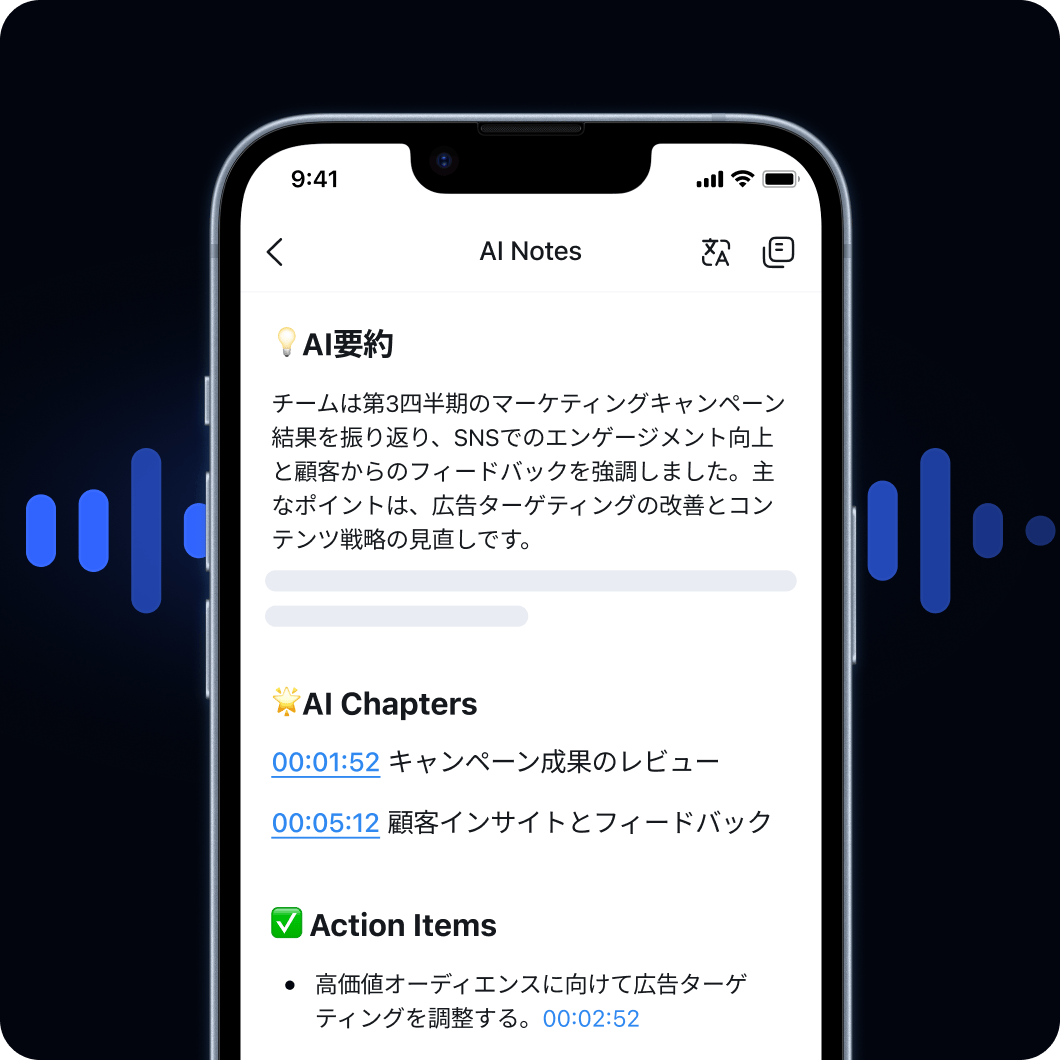 はい!Notta Memoは、インターネット接続なしで最大30時間の音声をローカルに録音・保存します。Wi-Fiに再接続すると、録音内容は自動的にクラウドに同期され、AIによる処理、文字起こし、要約作成が行われます。